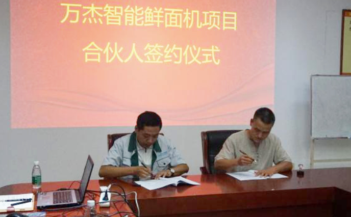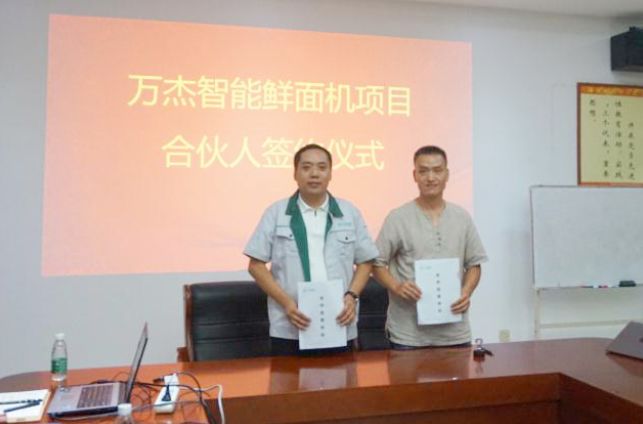 2017年7月28日,萬杰智能又迎來一位合作伙伴---許昌君多衡食品有限公司總經理吳敬偉先生,吳總與萬杰智能董事長王曉杰在萬杰智能總部正式簽署了《智能鮮面機合伙人合作協議》。 簽約現場 許昌市區是萬杰智能的直營市場,從2016年9月份開始正式開始運營,經過不到一年的時間,得到了老百姓和店主的普遍認可,也為合伙人和意向合伙人提供了具備實操性的運營思路。 禹州市緊鄰許昌市區,借著許昌市區前期的影響力,再加上合伙人吳總(華龍、實佳、新匯面粉運營商)的現有渠道能力和運營能力,相信禹州的老百姓很快就能吃到“現吃現做,放心看得見”的現制面條了。 萬杰智能鮮面機項目擁有強大的產品力,8秒出面的智能鮮面機是行業首創,受22項專利保護,無論是老百姓還是店主還是意向合伙人等一看到產品都深表認同,近期在模式調整后,吸引了眾多的意向合作伙伴,尤其糧油、面粉的經銷商朋友們,因為渠道吻合、運營成本可攤銷、也能增強老百姓與原來其經營產品的粘合度,甚至可以依托智能鮮面機為其開拓新的網點。 一項事業,只有負有了社會責任感,只有確確實實能對老百姓有利,才有可能稱之為偉大的事業,而偉大的事業勢必是社會上足夠多的利益共享、有責任擔當的各位能人志士加入才有可能實現,萬杰智能熱烈歡迎各位伙伴的加入,共同為“主食安全”保駕護航。 |