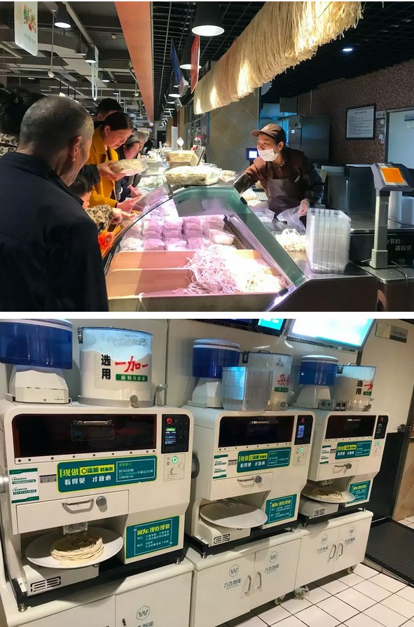 2016年下半年,許昌市作為樣板市場(chǎng),正式開(kāi)始鋪設(shè)鮮面機(jī),不知不覺(jué),已快3年,目前許昌市大范圍鋪設(shè)鮮面機(jī),樣板市場(chǎng)從創(chuàng)立到發(fā)展至今逐漸成熟,經(jīng)過(guò)了一段創(chuàng)新實(shí)踐的探索之路。 從進(jìn)駐雜面館到制作出的雜面條成為餐桌上的美味,從入駐胖東來(lái)等知名商超到被眾多老百姓熟知并認(rèn)可,從傳統(tǒng)渠道的深耕再到打破常規(guī),入駐中原銀行,為全國(guó)的客戶(hù)與合作伙伴提供更多可借鑒的發(fā)展新思路。許昌市越來(lái)越多的老百姓,已經(jīng)習(xí)慣了鮮面機(jī)的陪伴,甚至,有些依賴(lài)。 這期間,有思考也有收獲。現(xiàn)如今,就智能鮮面機(jī)許昌市場(chǎng)的發(fā)展最新進(jìn)展總結(jié)如下,希望與朋友們分享、共勉,能為朋友們帶來(lái)更多的借鑒。 一、 面館寵兒,省人工,配比好掌控。 在許昌有很多只賣(mài)雜面條的餐館,店里以主打雜面條為主,這類(lèi)餐館就因?yàn)橘u(mài)這種雜面條備受歡迎。而且,雜面條既美味又營(yíng)養(yǎng),逐漸被越來(lái)越多的消費(fèi)者認(rèn)可。其中,許昌的野菜黑豆面和琛晟客來(lái)香雜面館是兩個(gè)新開(kāi)業(yè)不久的雜面館。店老板表示,之所以選用智能鮮面機(jī),一方面,可以有效的節(jié)省人工,降低成本;另一方面,雜面條的配比很重要,智能鮮面機(jī)現(xiàn)吃現(xiàn)做,可以輕松的調(diào)制面條和雜糧的比例,有效的保障面條的口感。此外,面條吃多少做多少,沒(méi)有浪費(fèi),為他們解決了做面的大難題。 值得一提的是,在琛晟客來(lái)香雜面館擺放了兩臺(tái)智能鮮面機(jī)設(shè)備。一臺(tái)擺放在一樓的進(jìn)門(mén)處,可以與消費(fèi)者面對(duì)面實(shí)現(xiàn)互動(dòng)溝通,有效的聚集了人氣。另一臺(tái)則擺在后廚擔(dān)當(dāng)起重任。兩臺(tái)智能鮮面機(jī)設(shè)備同時(shí)工作,成為店中不可或缺的“關(guān)鍵人物”。 二、 現(xiàn)制面條逐漸在商超店中成為流行。