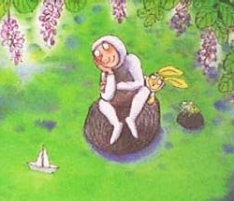 我很欣賞臺灣漫畫家幾米一幅題為《有效期限》的漫畫,畫的中心是一片淺綠的水,上部有一些葉片粗大開滿了紫花的藤兒,中間偏下是兩塊大石頭,大石頭上坐著一大一小兩個人,小石頭上蹲著一只好奇的小青蛙。左下角一只小紙船正悄然無聲地駛來,朦朦朧朧的影子倒映在水里,顯得那樣圣潔、詩意而又孤寂、無助。旁邊的詩云:“一艘小紙船,悠悠地飄過來,吸飽水分,漸漸沉沒。世界上所有的美好,都有有效期限。”